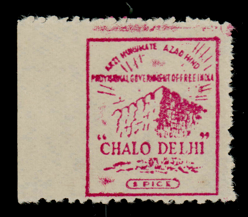 India “CHALO DELHI”, for provisional Government of free India printed in Rangoon (Burma), 1p, maroon, unused, fine