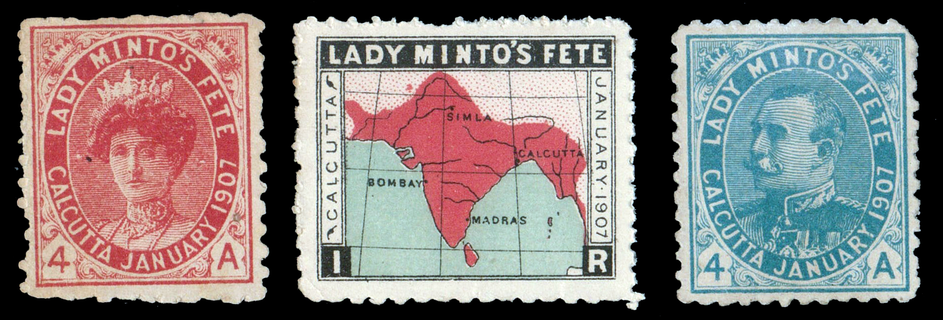 / India Lady Minto Fete complete set of 3 perforated labels